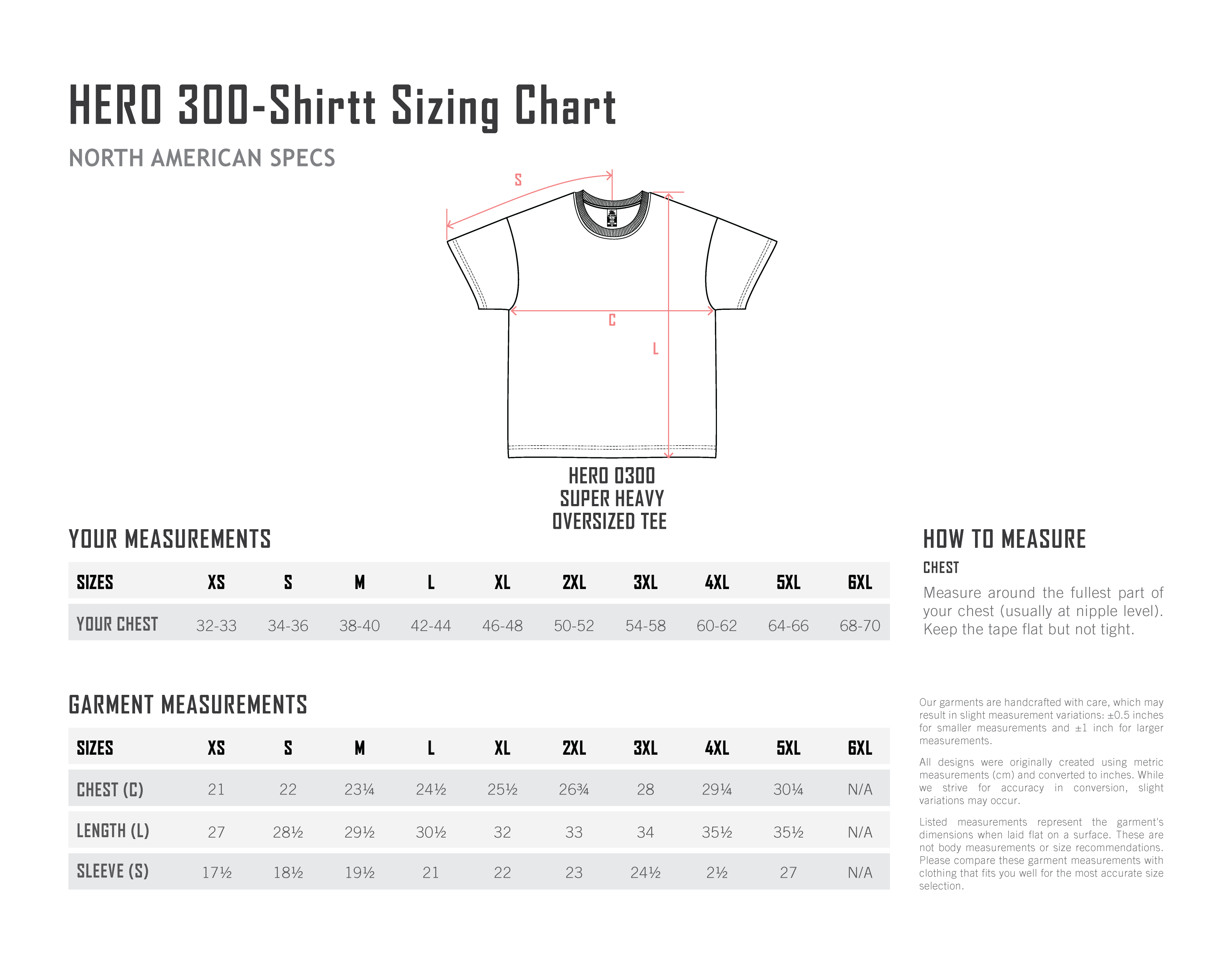 | Chest (C) | 42 in | 44 in | 46.5 in | 49 in | 51 in | 53.5 in | 56 in | 58.5 in | 60.5 in |